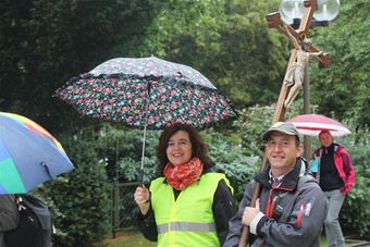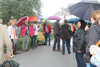 von links: Domkapitular Clemens Bieber, Wolfgang Meixner und Rainer Ziegler besprechen die erste Etappe des Wallfahrtsweges.