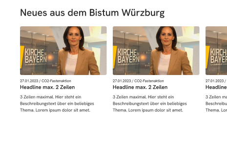 Varianten: "Listen-" oder "Kachelansicht". Wahlweise mit oder ohne Bilder und hervorgehobener Top-Nachricht. Individuelle Platzhalter-Bilder möglich.